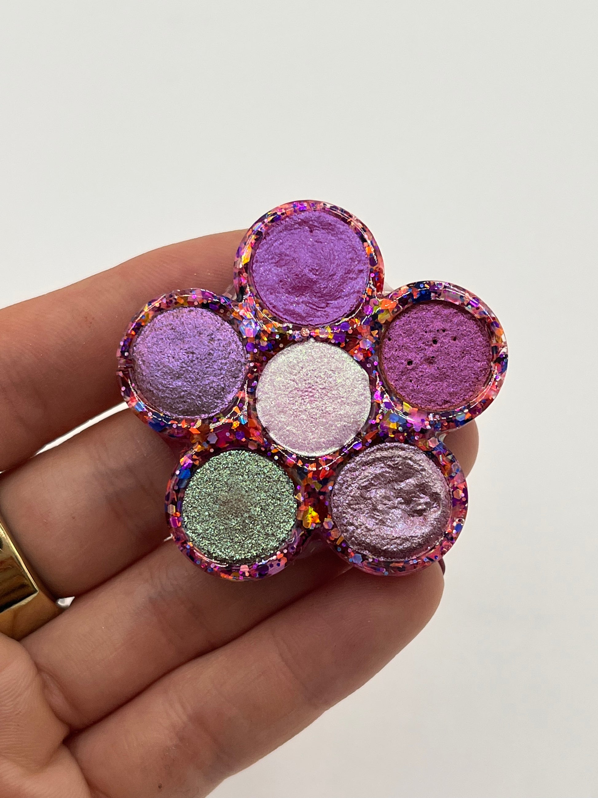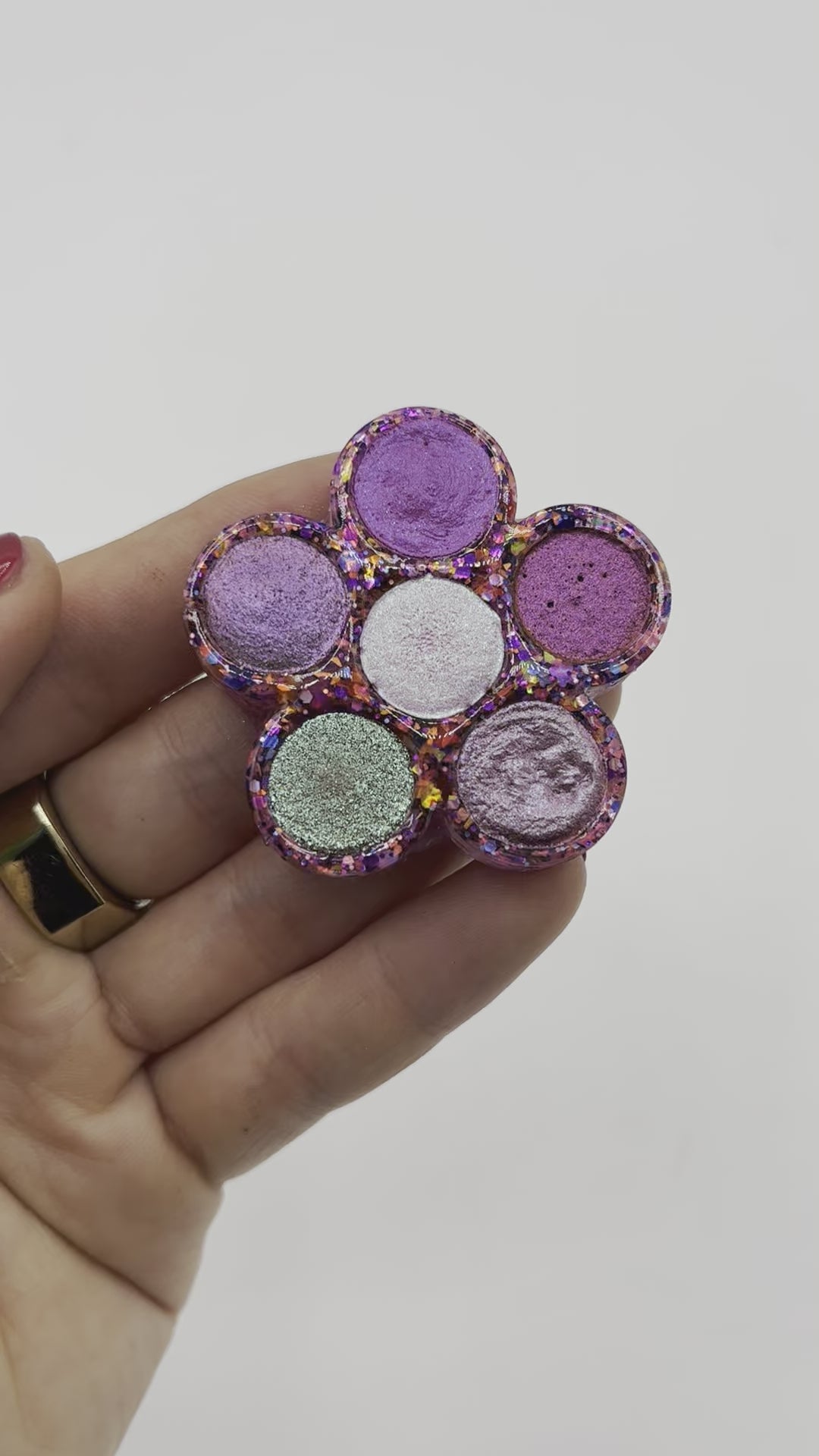 6 gorgeous water-activated non-toxic paints in a unique glittery resin flower-shaped palette. Simply add 2 drops of water into each color to activate and begin painting. Colors may vary.