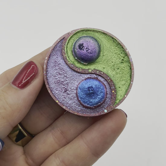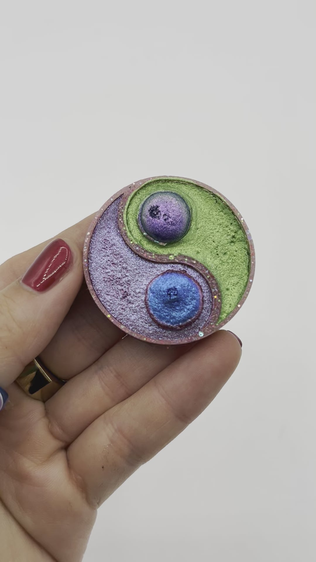Super limited, these babies are a custom-made intricate yin/yang palette. The inner circles hold about 1/4 quarter pan worth of paint, I'd say the outer yin/yang may be closer to 3/4 pan.